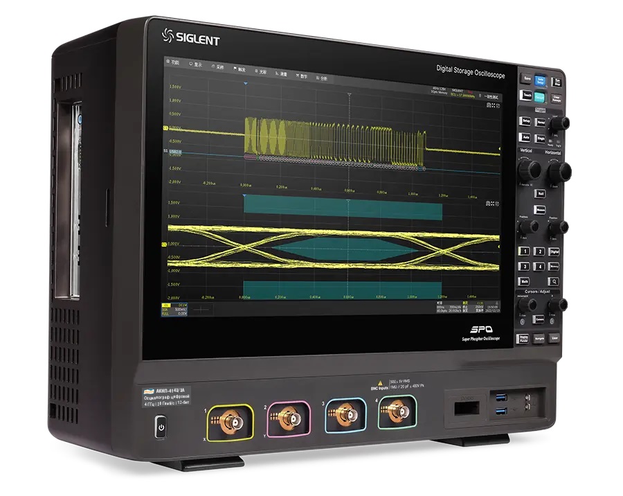 | Особенности | Осциллограф высокого разрешения, разрядность АЦП 12 бит. Высокая скорость обновления экрана до 1.000.000 осц./сек. Режим сегментированной памяти. Режим HISTORY. Интерполяция - Sin X/х, линейная. Автоматические (более 50-и параметров) и курсорные измерения. Математические функции, БФП (32 МБ). Режим «Поисковая машина/ Search» для поиска событий по условиям заданным пользователем. Синхронизация и декодирование сигналов, стандартно - I2C, SPI, UART/RS232, CAN, LIN, опционально - CAN FD, FlexRay, I2S, MIL-STD-1553B, SENT, Manchester, USB 2.0. Опция - логический анализатор 16 каналов. Опция - функциональный генератор до 50 МГц. Опция - измерение мощности и показателей качества электроэнергии (ПКЭ). Опция - построения глазковых диаграмм и анализ джиттера. |